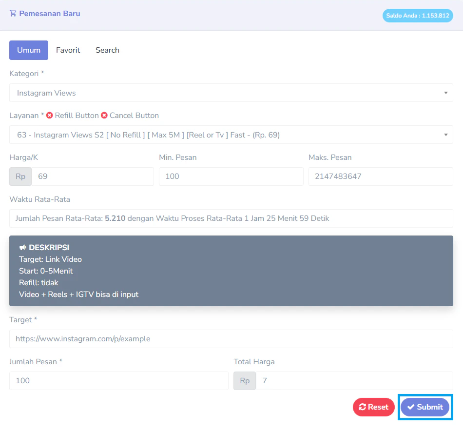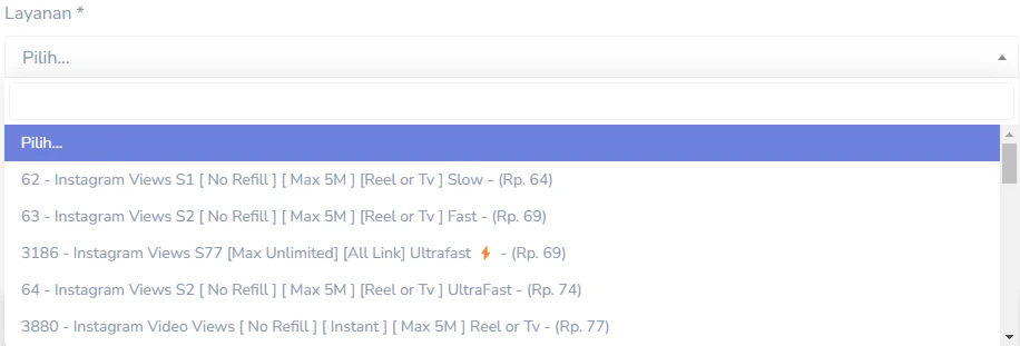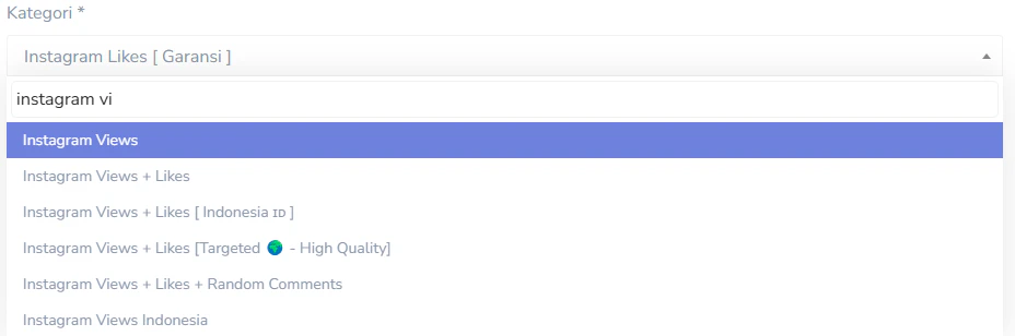 Instagram Viewspada formulir pemesanan, lalu pilih salah satu kategori sesuai dengan layanan yang ingin Anda pesan.