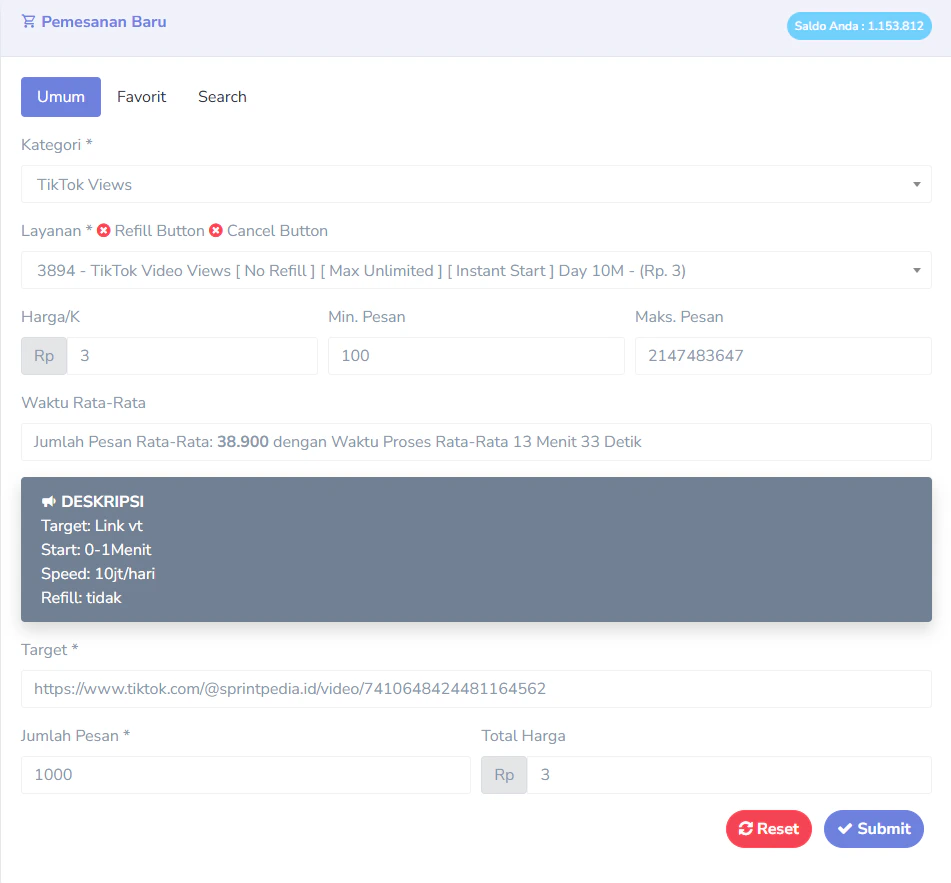 - Silakan masukkan jumlah sesuai keinginan Anda untuk peningkatan jumlah Views.