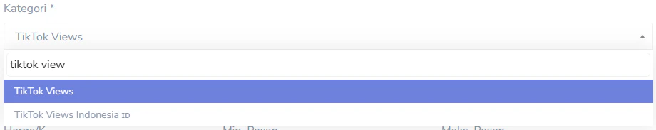 TikTok Viewspada formulir pemesanan, lalu pilih salah satu kategori sesuai dengan layanan yang ingin Anda pesan.